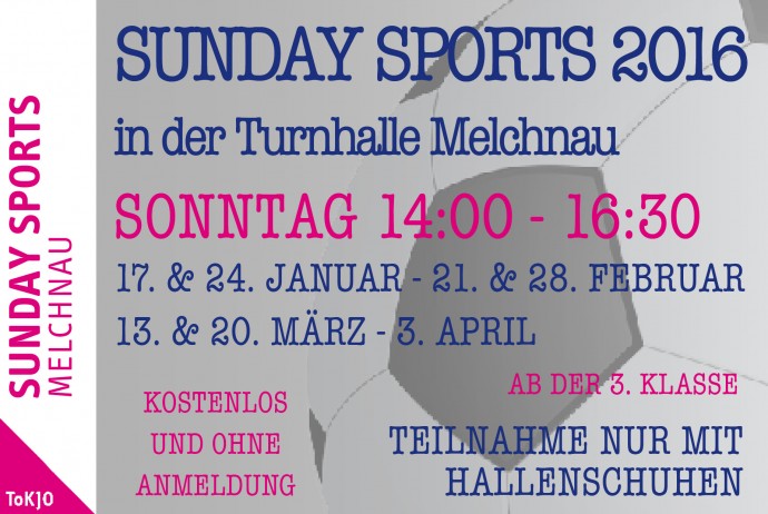 Willkommen sind alle Melchnauer & Obersteckholzer Kinder & Jugendlichen ab der 3. Klasse. Auch ältere Jugendliche sind willkommen, wenn diese bereit sind, als Coach ein wenig Verantwortung für den Nachmittag zu übernehmen. Gemeinsam können die Teilnehmenden in Absprache mit der Jugendarbeiterin das Sportprogramm für den Nachmittag selbst bestimmen. ToKJO freut sich auf tolle Nachmittage mit vielen bewegungsfreudigen Teilnehmenden.