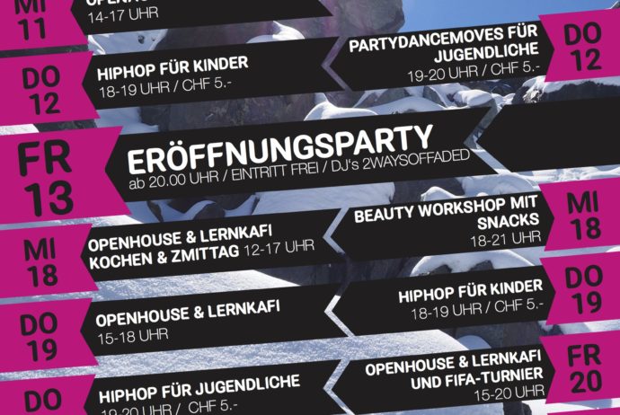 Bereits mehrere Male ist das Jugendteam, welches sich aus der Zukunftswerkstatt im Oktober gebildet hat, zusammengesessen. Sie waren voller neuer Ideen und kreativ. So konnten bereits einige Inputs der Zukunftswerkstatt umgesetzt werden. Was sich für den Monat Januar ergeben hat sieht ihr hier.