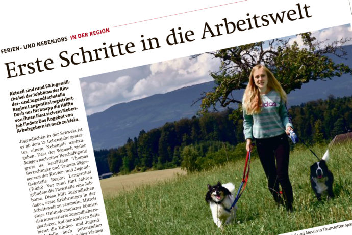 „Erste Schritte in die Arbeitswelt. Aktuell sind rund 50 Jugendliche bei der Jobbörse der Kinder- und Jugendfachstelle Region Langenthal registriert. Doch nur für knapp die Hälfte von ihnen lässt sich ein Nebenjob finden: Das Angebot von Arbeitgebern ist noch zu klein.“ Berner Zeitung, 11. August 2016