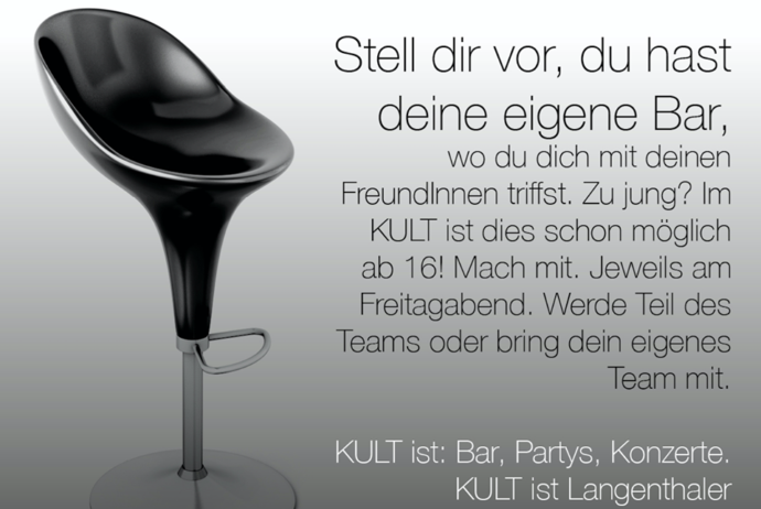 Seit 2013 bietet ToKJO Jugendlichen ab 16 Jahren die Möglichkeit im Kulturstall in Langenthal eine eigene Bar zu führen und in einem kleinen Team an jugendkulturellen Events mitzuwirken. Das aktuelle KULT-Team, welches die Bar seit rund 2 Jahren mit Herzblut geführt hat, beendet nun sein Engagement aufgrund beruflicher Veränderungen. Neben der wöchentlich am Freitagabend von ihnen geführten Bar, wo sich Jugendliche treffen und günstig verpflegen konnten, hat sich das Team vielfältig an verschiedensten Anlässen engagiert: Events von externen Veranstaltern wie beispielsweise Theaterbar vom Gymo- und dem Shnawariatheater, konnten genauso wie eigene Konzerte oder Partys begleitet werden. Wichtig dabei war, dass die beteiligten Jugendlichen selbst Verantwortung für die Bar, aber auch für Events übernahmen. In den jährlich einmal stattfindenden Retraiten wurde evaluiert, diskutiert, geplant und wurden Ideen geschmiedet um immer wieder neuen Wind in die Bar zu bringen. Dem KULT-Team ist dies mehr als gelungen.
