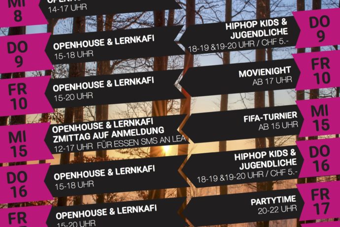 Auch im Februar wartet wieder ein tolles Programm auf euch! Party, Movie Night aber auch das FIFA Turnier und der Beauty Workshop mit kleinen Snacks dürft ihr auf keinen Fall verpassen. Wer gerne am Mittwoch dem 15. Februar mit uns Mittagessen würde, soll sich bei Lea unter 077 420 16 60 anmelden. Wir freuen uns auf euch!