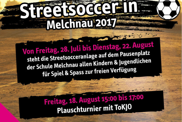 Am 28. Juli ist es wieder so weit und die Streetsocceranlage wird wieder in Melchnau auf dem roten Platz aufgebaut. Danach steht sie allen Melchnauer Kindern und Jugendlichen zur Verfügung, um schnelle Fussballpartien auszutragen oder andere Sportarten in der Anlage auszuprobieren.