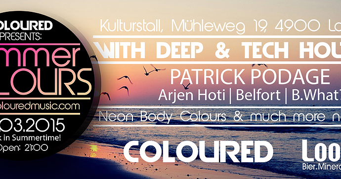 Summer Colours bietet einen prächtigen Auftakt zur Party-Reihe von Colouredmusic. Das LineUp entführt euch in eine farbenfrohe, heitere Nacht. Mit dabei: