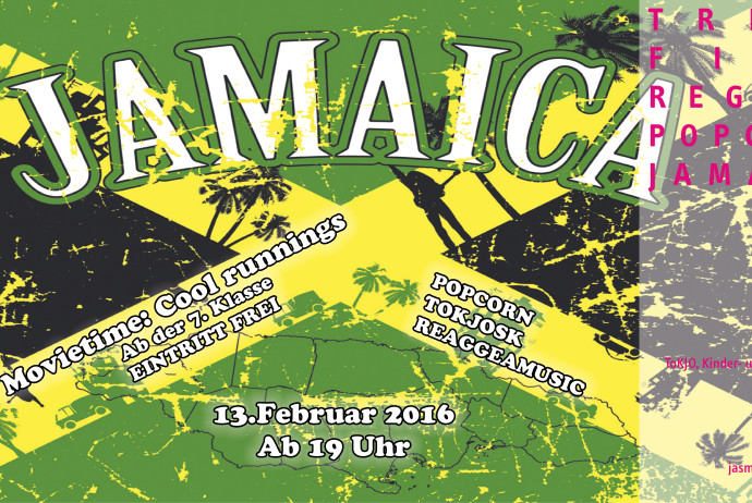 Tanzen zu Reggeaklängen und mit Popcorn herzhaft zum Film „cool runnings“ lachen, so sieht am Freitag 12.2.16 der Jamaika-Abend im Youthpoint aus.