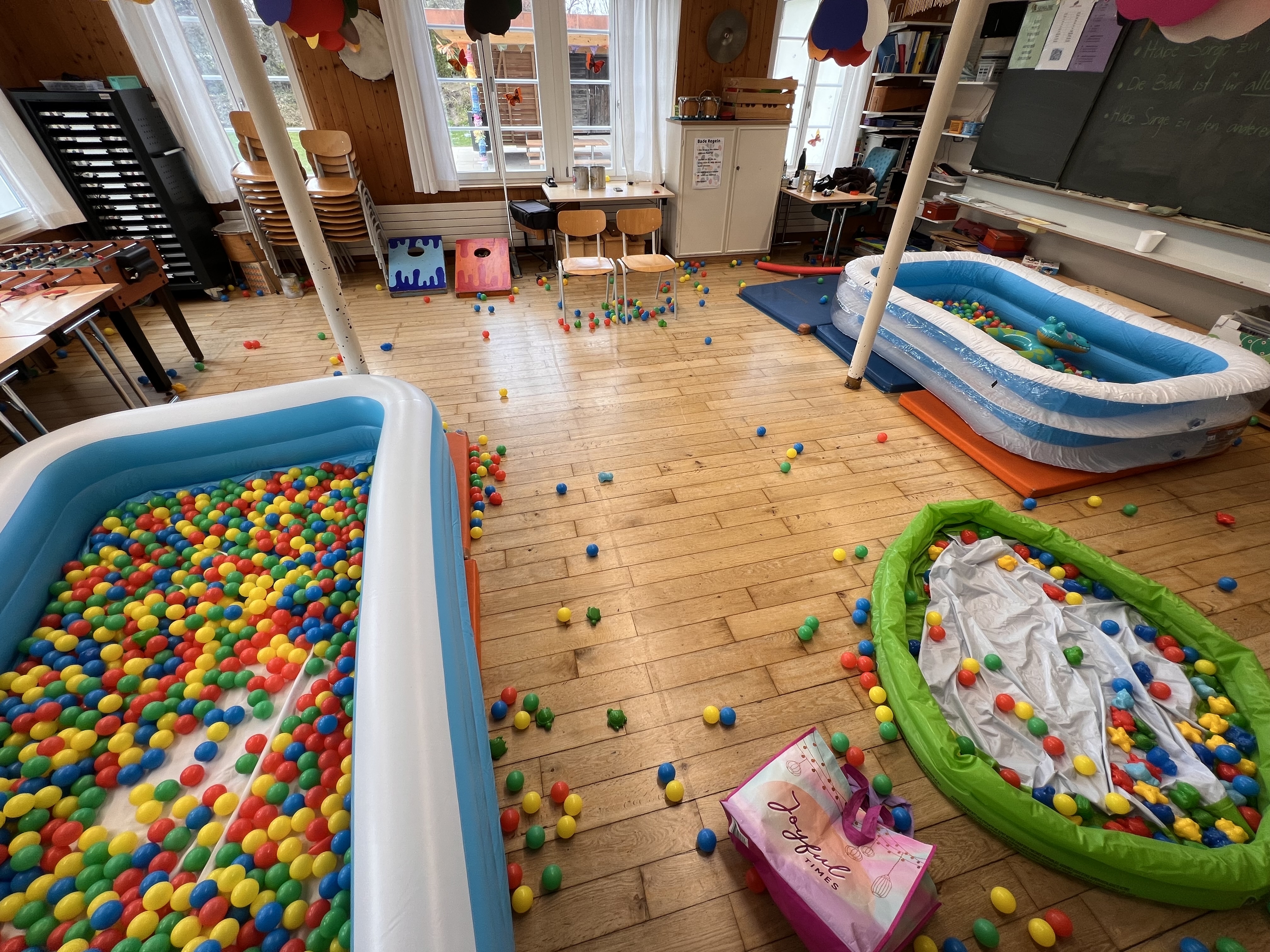Nun haben wir erste Erfahrungen gesammelt und das Material steht bereit im Lager. Wenn es sich ergibt und das Interesse da ist, würden wir mit Freude das Bällebad erneut hervorholen und bespielen. Einziger Wunsch der uns für eine weitere Gelegenheit mitgegeben wurde: Nächstes Mal bitte mehr Zeit im Bällebad!